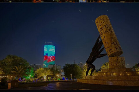 Bağdaddakı ən hündür binalardan birində Azərbaycan bayrağı əks olunub