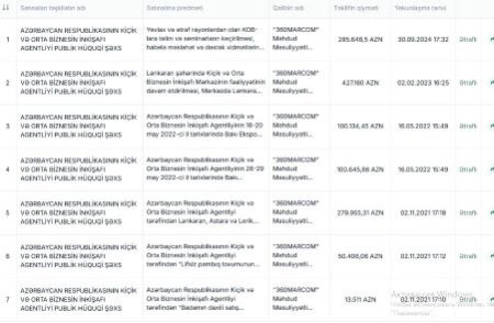 Ötən bu 8 il ərzində heç bir dövlət büdcəli qurumun satınalmasında qalib ola bilməyən "360Marcom" MMC nədənsə 2021-ci ildən başlayaraq KOBİA-nın keçirdiyi satınalma müsabiqələrində qalib elan edilib.