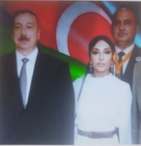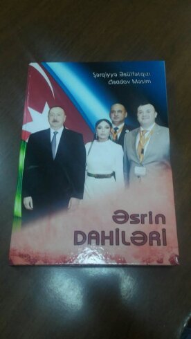 Dekanın öz fotoşəkili Prezident İlham Əliyev və Birinci Vitse-prezident Mehriban Əliyeva ilə yanaşı montaj edilib, görüntünün üzərinə isə “Əsrin dahiləri” ifadəsi yazılıb