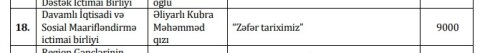 Qısa zamanda Aygün Əliyeva bu rəfiqəsinin də rəhbərlik etdiyi təşkilatı qrantsız qoymur. Bu istiqamətdə Yenixeber.org-a ötürülən məlumata görə, Kubra Əliyarlının sədri olduğu “Davamlı İqtisadi və Sosial Maarifləndirmə” ictimai birliyi 2022-ci ilin qrant müsabiqəsində 9 min manat qrant vəsaiti alır. İllərlə QHT sektorunda ciddi təşəbbüsləri ilə seçilən təşkilatlar 8-9 min manat qrant aldığı halda, heç bir ciddi fəaliyyəti olmayan yeni bir QHT də 9 min manat qazanır(?)