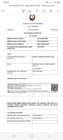 Uzun oldu, üzrlü sayın, 3 ildir nəinki pensiyamın məhkəmə yolu ilə artımına nail ola bilirəm, əksinə məhkəmə qərarı ilə 9 il qabaq ayrılan vəsaiti də borclu DSMF XŞTMF ləğv edib. Bakı İM isə məhkəmə qərarının icrasını mümkün saymır, Bakı AM-inmİK-sı da bu mümkünsüzlüyü qüvvədə saxlayır. Özbaşınalığa baxın, Şərafət Məmmədova özünün çıxardığı qərarın icrasına qadağa qoyub, Bakı Apellyasiya Məhkəməsi də bu qadağanı qüvvədə saxlayıb. Ali Məhkəmə də özünü notariat kontorundan da aşağı səviyyədə aparır. Hazırda məhkəmə qərarının icrasının təmin edilməsi haqqında  tələbkar kimi verdiyim ərizənin mümkün sayılmaması haqqında Bakı AM-in İK-sının qərardadından (Şərafət Məmmədova, Ceyhun Məmmədov, Pərviz Hüseynov və Xəyalə Cəmilova (hazırda Ali Məhkəmədə özbaşınalığını sürdürür) , Rəşid Səmədov, Aytən Oruczadə, Günel Abbasova)  kassasiya şikayətim Ali Məhkəmədə 5 aydır baxılmır. İş Rahib Nəbizadənin sədri olduğu Səyyad Kərimov, Bəhram Məmmədlidən ibarət heyətinin icraatına verilən kimi borclu DSMF-in prosessual fəaliyyət qabiliyyəti olmayan MƏHKƏMƏ FİLİALI-39 SAYLI VƏKİL BÜROSUNUN (DEPARTAMENT MÜDİRİ, HƏM DƏ VƏKİL EMİL İSGƏNDƏRLİ)  MƏHKƏMƏ QƏRARININ İCRASINA ETİRAZI kabinetdə yerləşdirilib. Axı borclu MƏHKƏMƏ FİLİALI-39 SAYLI VƏKİL BÜROSU YOX, XÜSUSİ ŞƏRTLƏRLƏ TƏYİNAT ÜZRƏ MƏRKƏZİ FİLİALIDIR!