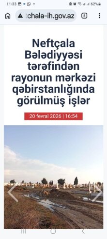 Yenixeber.org: Məlumatda qeyd olunub ki, Prezident cənab İlham Əliyevin rəhbərliyi ilə respublikada regionların sosial-iqtisadi inkişafı, yol infrastrukturunun yenilənməsi və vətəndaşların rifah halının yüksəldilməsi istiqamətində aparılan siyasət yerli özünüidarəetmə orqanlarının fəaliyyətində əsas istiqamət kimi götürülür. Qeyd olunur ki, Neftçala bələdiyyəsi də bu siyasətə uyğun olaraq öz səlahiyyətləri çərçivəsində müvafiq işlər həyata keçirir. Rəsmi açıqlamada bildirilir ki, rayonun mərkəzi qəbiristanlığında dəfnlərin rahat keçirilməsi və nəqliyyat vasitələrinin hərəkətinin təmin olunması məqsədilə 400 metrlik hissədə hamarlanma işləri aparılıb, hərəkət üçün əlverişli şərait yaradılıb. Lakin yayılan fotolar tam fərqli mənzərə ortaya qoyur. Görüntülərdən aydın olur ki, qeyd olunan ərazidə nəinki ciddi yol infrastrukturundan, adi bir fəaliyyətdən belə söhbət getmir. Cəmi bir neçə metrlik hissədə yolun üst qatının tələsik şəkildə hamarlanması, qəbiristanlıq yolunun müəyyən hissəsinə isə daş qalıqları və tikinti tullantılarının tökülməsi müşahidə olunur. Yerli sakinlər hesab edirlər ki, təqdim olunan məlumatla faktiki vəziyyət arasında ciddi ziddiyyət var və bu cür işlərin “infrastrukturun yaxşılaşdırılması” kimi təqdim edilməsi doğru deyil.(bizimesr.az) Məsələ ilə bağlı qarşı tərəfin mövqeyini dərc etməyə hazırıq.