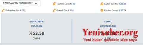 Azərbaycanda ən çox səs Ərdoğana verilib
