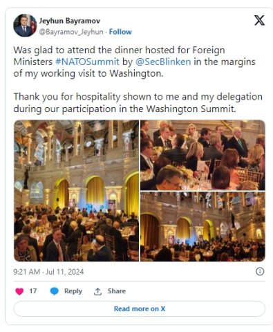 Azərbaycanın xarici işlər naziri Ceyhun Bayramov ABŞ-nin paytaxtı Vaşinqtonda keçirilən NATO sammiti üçün təşkil edilən naharda iştirak edib.