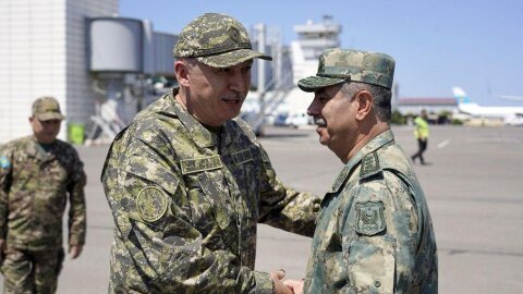 Azərbaycanın müdafiə naziri general-polkovnik Zakir Həsənov Qazaxıstanın müdafiə naziri general-polkovnik Ruslan Jaksılıkovun dəvəti ilə "Birləşdik - 2024" beynəlxalq əməliyyat-taktiki komanda-qərargah təlimini izləmək üçün qardaş ölkəyə səfər edib.
