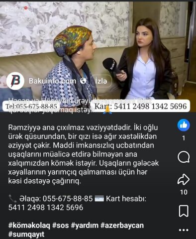 Bu hərbiçi ailəsinin övladlarının gələcək xəyallarının yarımçıq qalmaması üçün bütün yardımsevər insanlara üz tuturuq. Kimin nəyə gücü çatırsa, bu ailəyə dəstək olsun.