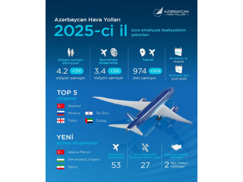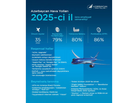 “Azərbaycan Hava Yolları” üçün 2025-ci il ümumi və tranzit sərnişin sayında artımla yadda qaldı. Yeni istiqamətlərin açılması, əməkdaşlıq əlaqələrinin möhkəmləndirilməsi, donanmanın modernləşdirilməsi və rəqəmsal həllərin tətbiqi istiqamətində atılan addımlar AZAL-ın müasir tələblərə cavab verən aviaşirkət kimi mövqeyini daha da gücləndirdi.
