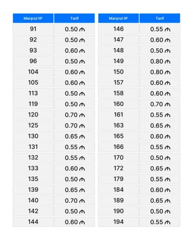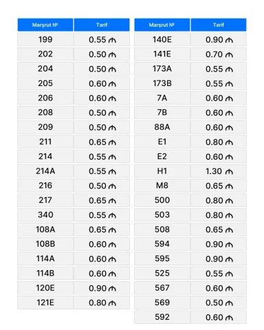 Bakıda bəzi avtobuslarda yeni tariflər müəyyənləşib -CƏDVƏL/FOTOLAR