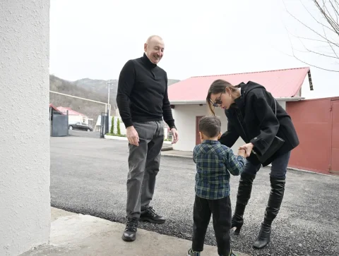 Yenixeber.org xəbər verir ki, sonra dövlət başçısı və birinci xanım kəndə köçmüş Bəybala Qasımovun evində olublar.