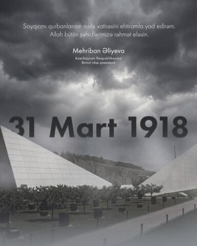 Azərbaycan Respublikasının Birinci vitse-prezidenti Mehriban Əliyeva sosial şəbəkə hesablarında 31 Mart – Azərbaycanlıların Soyqırımı Günü ilə bağlı paylaşım edib.