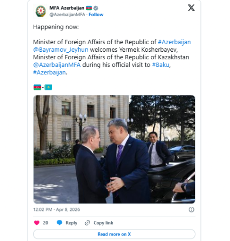 Bu barədə nazirlik "X" sosial media hesabında məlumat yayıb.