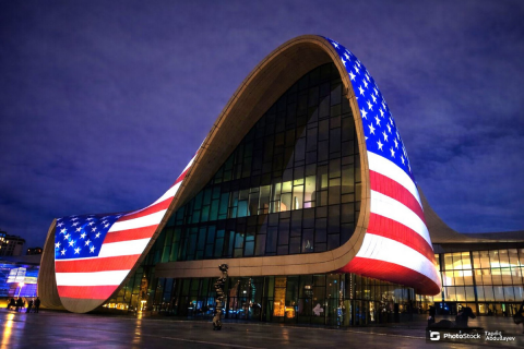 Heydər Əliyev Mərkəzi ABŞ bayrağı ilə işıqlandırılıb