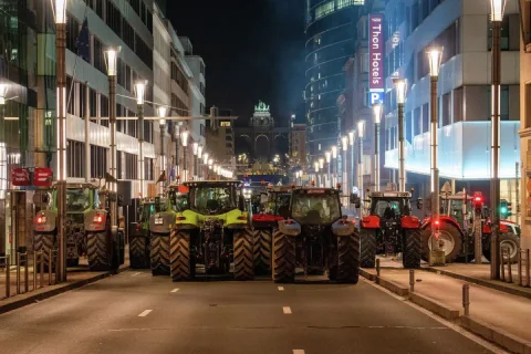 Brüsseldə etirazçı fermerlər traktorlarla yolları bağlayıb